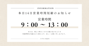 営業時間が数日変更となります。