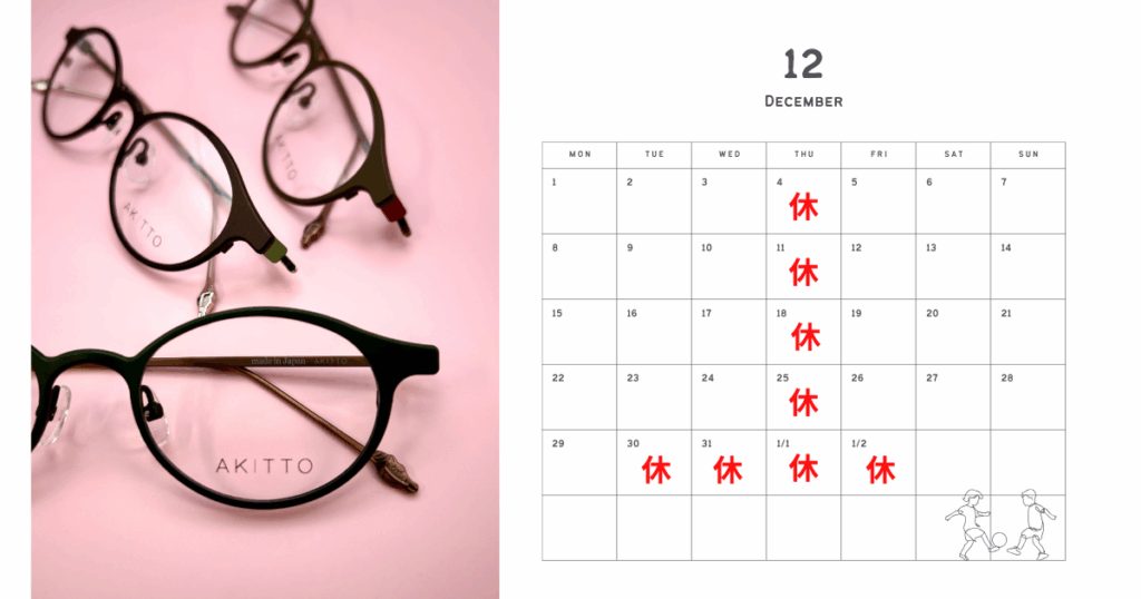 12月の定休日(木)と年末年始の休業日
