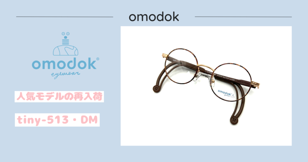 omodok『tiny-513・DM』再入荷 2026年2月11日 最終更新日時 : 2026年2月10日 tomohiro tiny-513・DM おしゃれ可愛い子供メガネブランド『omodok(オモドック)』。2歳児・3歳児・4歳児・5歳児・6歳児と小さなお子様向けの推奨モデルの“tiny(ティニー)シリーズ”。大人気モデル《tiny-513》のDMが再入荷しました。 omodok tiny tiny-513 41□17 Col.DM Made in Japan tiny-513 DM 入荷の度に完売してしまうので常時複数本確保するようにしております。お探しでしたら是非ご来店下さい。