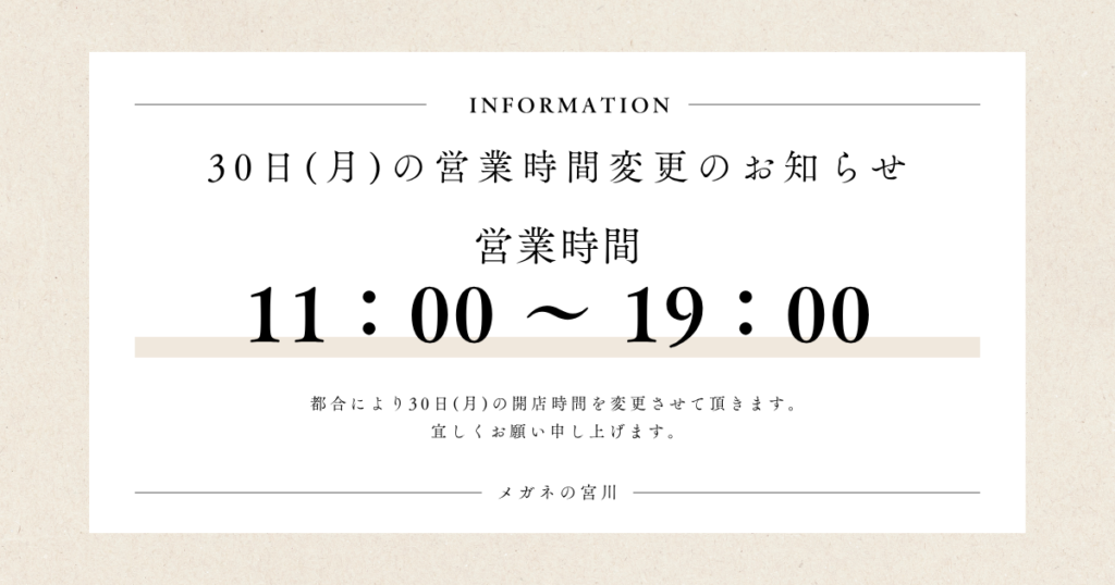 30日(月)営業時間変更のお知らせ 2026年3月29日 最終更新日時 : 2026年3月28日 tomohiro 急なお知らせになってしまい大変申し訳ございませんが 明日30日(月)の開店時間を12時に変更させて頂きます。 宜しくお願い申し上げます。